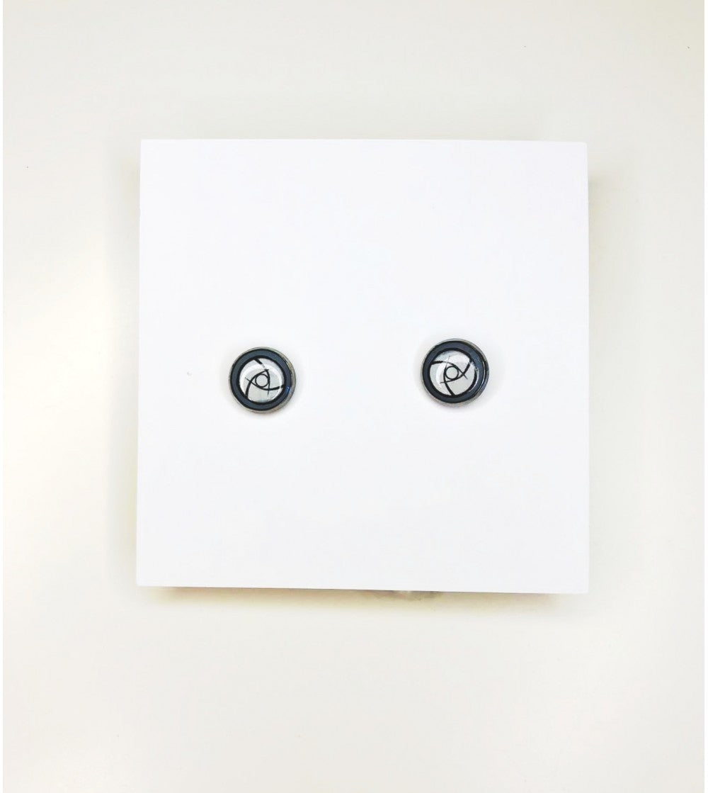 Orecchini a perno realizzati a mano, con copertura in resina UV. Perno in acciaio inox 304. Diametro 10 mm.