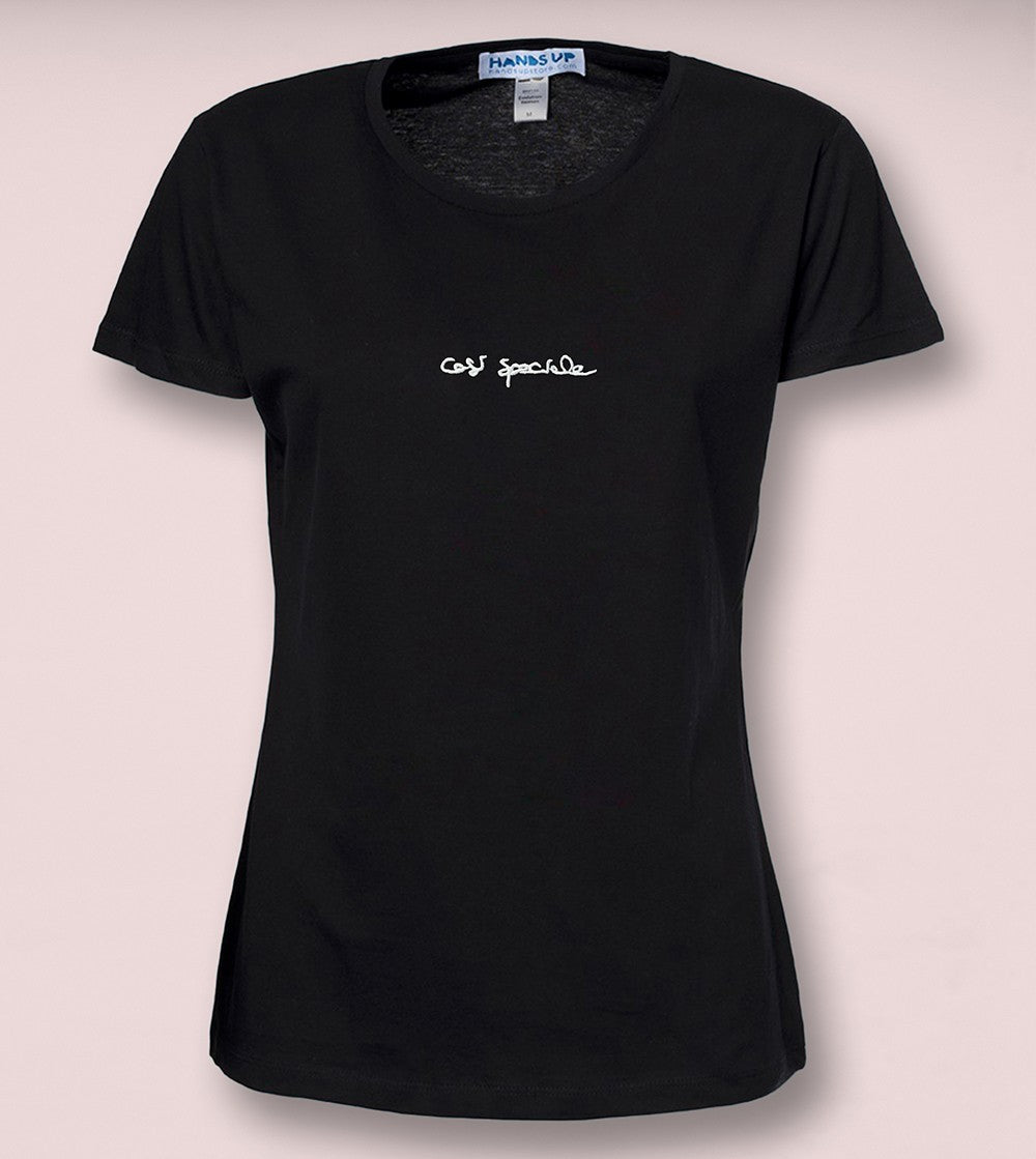 Dettagli: nera, 100% cotone, superficie morbida e liscia, modello da donna.