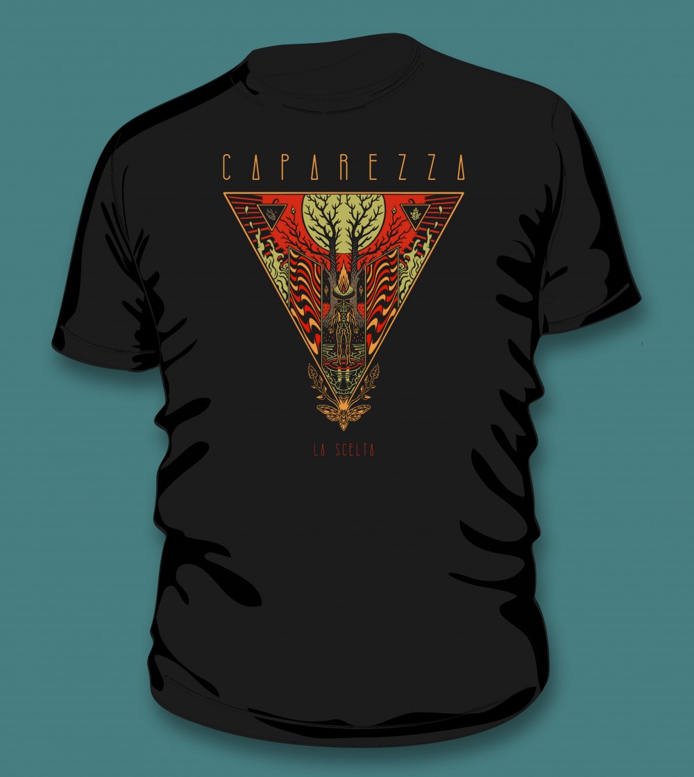 Maglia nera con stampa serigrafica policroma disegnata da Arturo Lauria