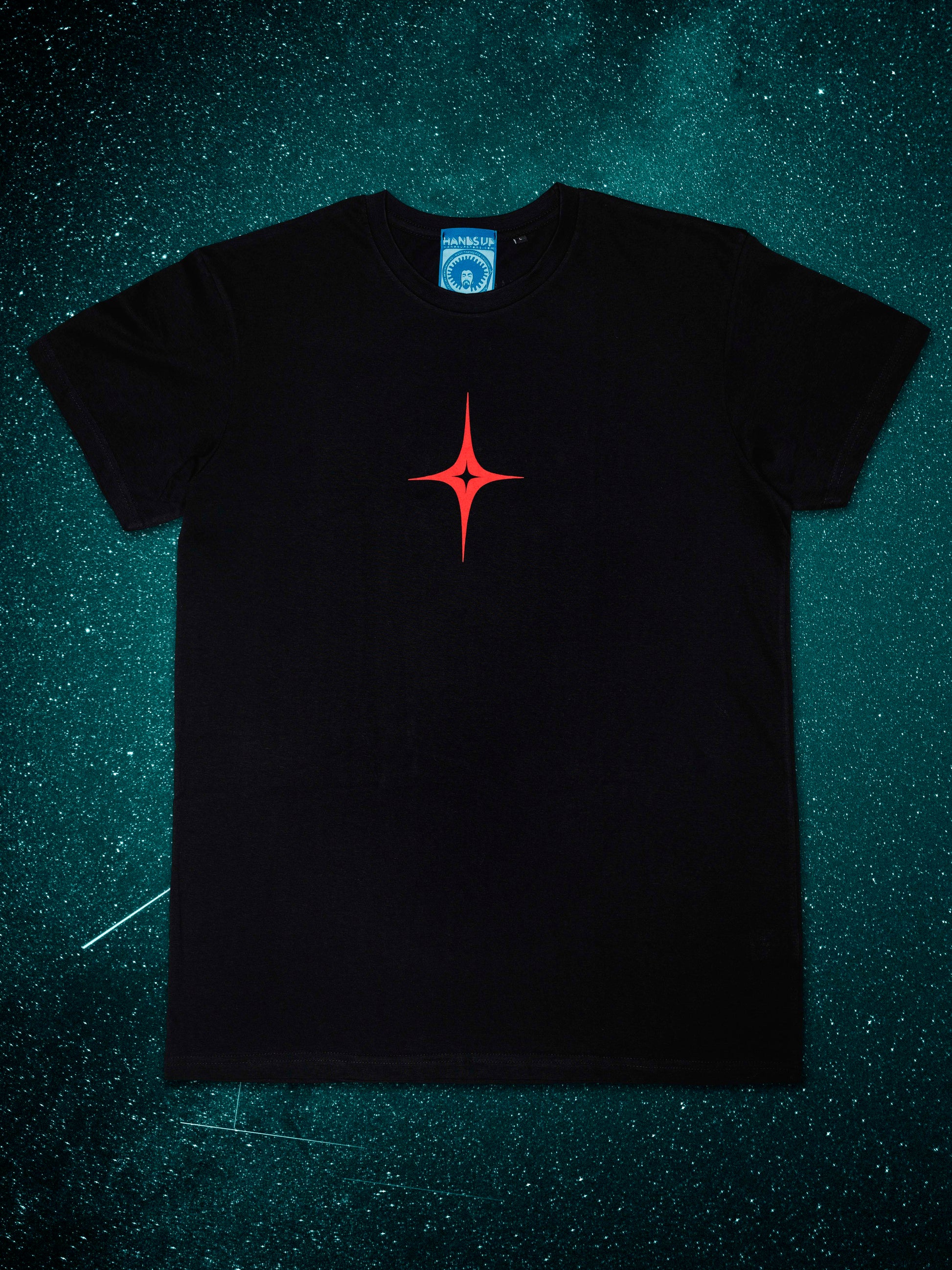 Maglia nera con simbolo rosso e scritta bianco e rosso